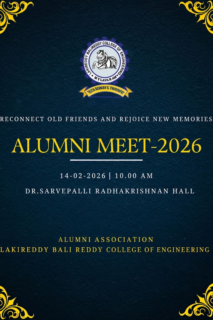 The Alumni Association of Lakireddy Bali Reddy College of Engineering (AALBRCE) is a registered society with registration number 154 on 28th April, 2006. The main objective is to enrol all alumni as members of the association and facilitating active participation of the alumnae in appropriate activities, events, and initiatives of the Institute. The LBRCE Alumni Association is an official unit of the Institute with the primary objective of facilitating the pleasant and friendly interface to all the LBRCE alumnae and creating a single semantic web of LBRCE fraternity. The LBRCE is truly proud of its brilliant alumni who are currently positioned all over the globe and have distinguished themselves in all spheres of high-end engineering and technology. The main aim of the LBRCE Alumni Association is to coordinate the networking of all the LBRCE alumni and to create a single global LBRCE community for the benefit of institute as well as student community.