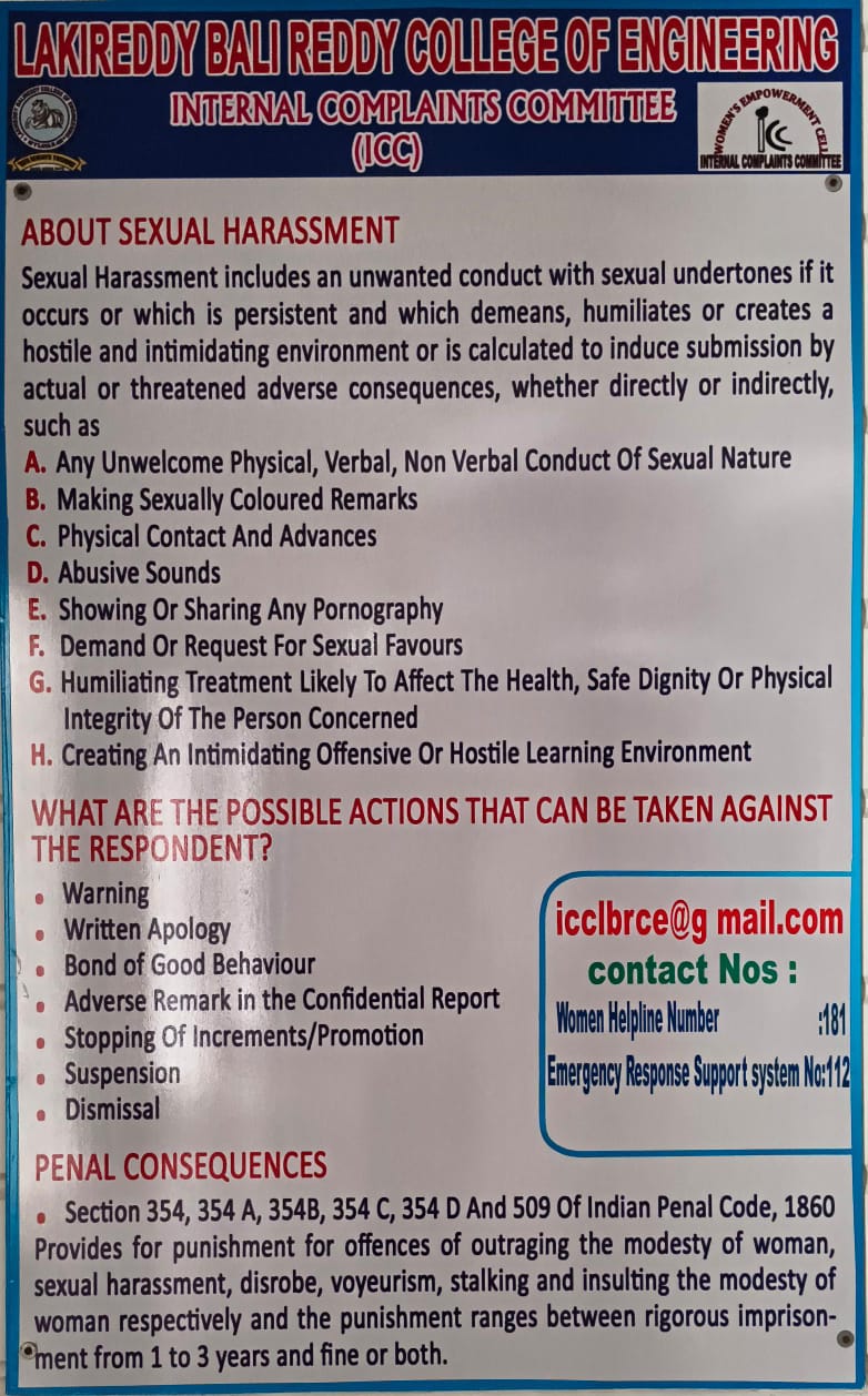 The Women’s Grievance & Empowerment Cell which is also called Internal Complaints Committee (ICC) is reconstituted on 19th June 2017.The committee is required to review periodically the empowerment & awareness programmes of women faculty, staff and girl students of the college for enhancing their role adopting specific strategies in achieving upward mobility. It provides an opportunity to the staff and students to bring their gender related issues to the notice of the higher authorities thereby creating a congenial atmosphere of mutual trust and respect. The committee deals with the complaints related to sexual harassment at workplace and finds amicable solutions.