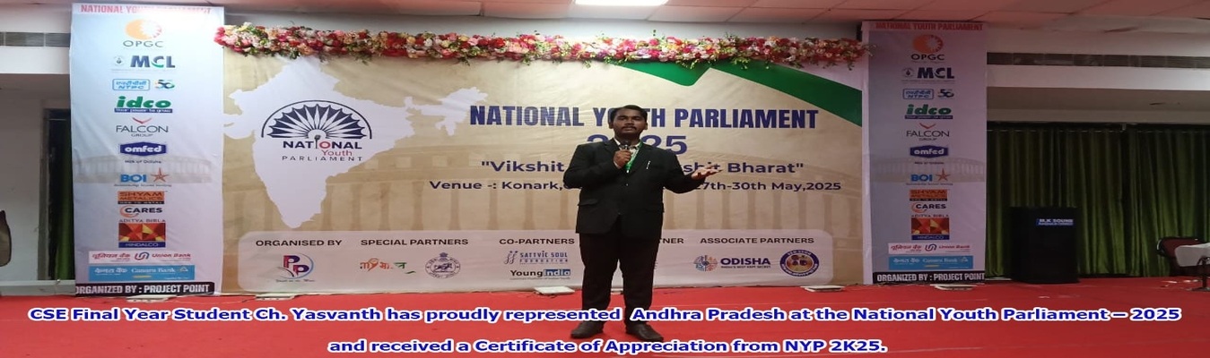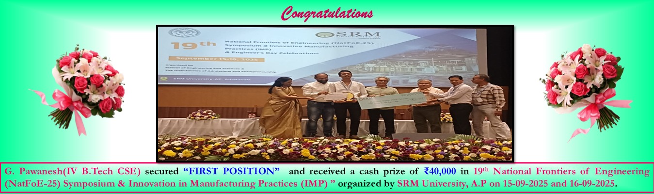 Ms. G. Baby Sindhuja, Student, Department of CSE (15761A0518) was awarded the "Best Computer Science Engineering Student 2019" Award by ISTE AP Section during the ISTE State Awards Function.