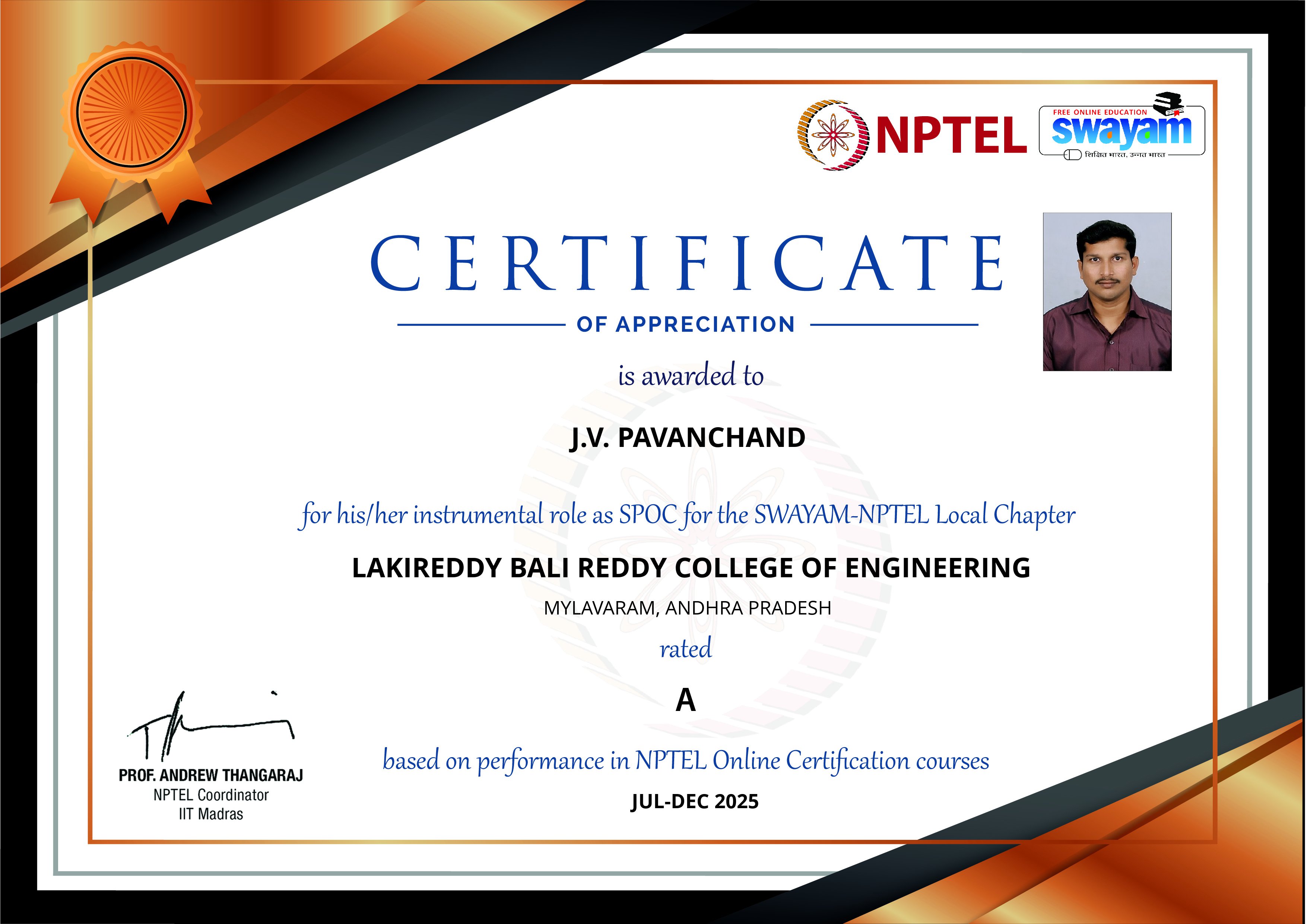 | Academic Year | Duration | Participation Category | Certified Candidates | Local Chapter Rating | NPTEL Stars | SPOC Certificate |