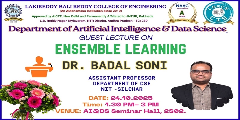 Department of Artificial Intelligence and Data Science is offering B.Tech in AI&DS-120 Seats