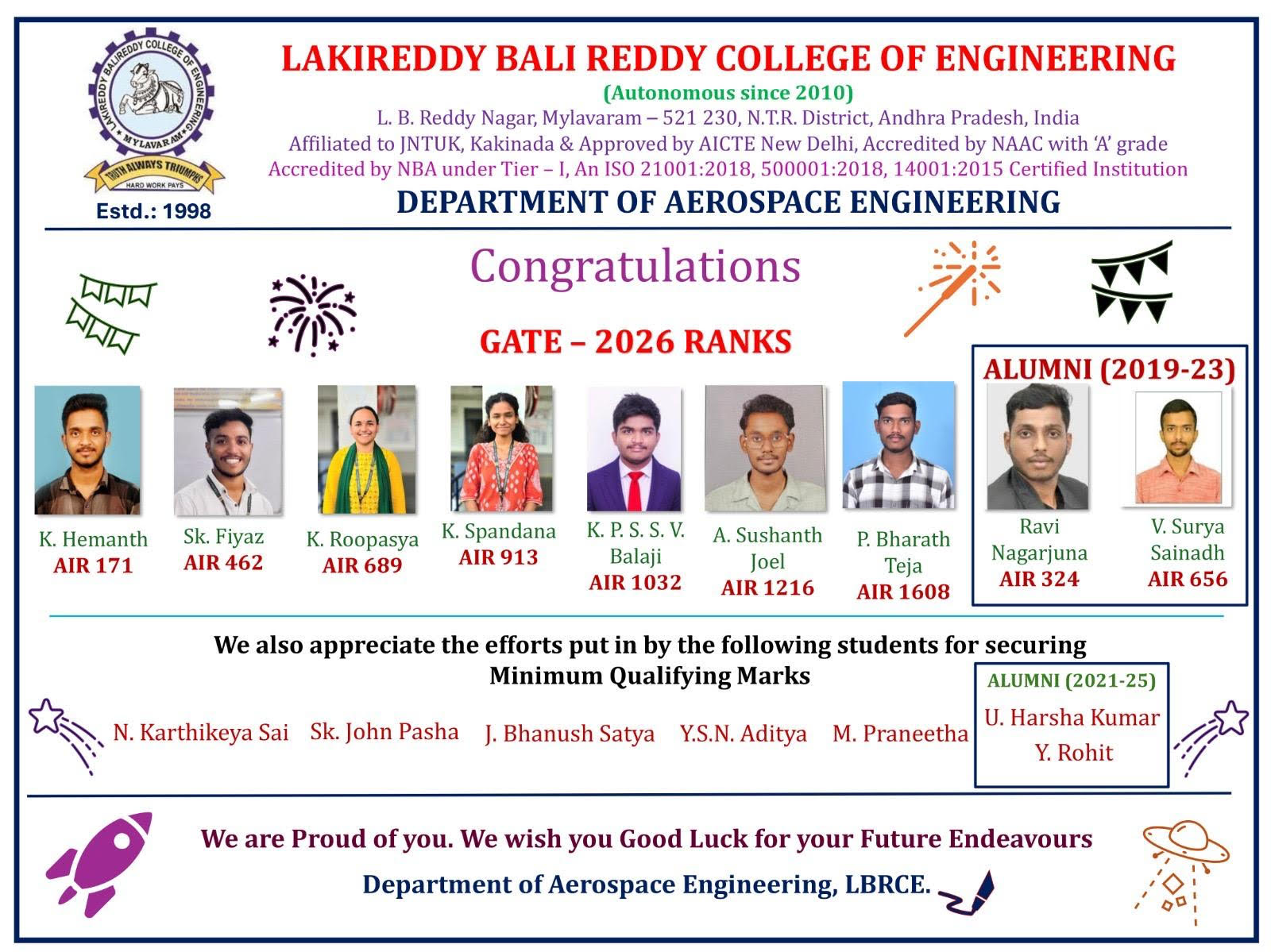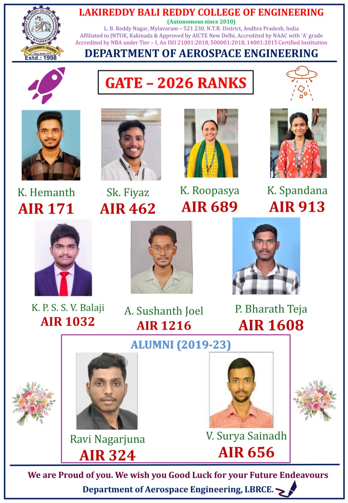 Aerospace is a specialised branch of engineering which deals with the design and development of Flying Vehicles such as aircrafts, rockets and space crafts. The course curriculum covers aspects of two branches of engineering - Aeronautical and Astronautical Engineering. The course also focuses on new technologies in aviation, defence systems and space exploration. The original term for Aerospace Engineering was Aeronautical Engineering but after the advancement of technology include aircraft entering into outer space the term was replaced to Aerospace Engineering. It comes under engineering courses. It is the demanding and challenging branch of engineering. The department is Accredited by National Board of Accreditation (NBA) under Tier – I for the three academic years, 2023-24 to 2025-26.