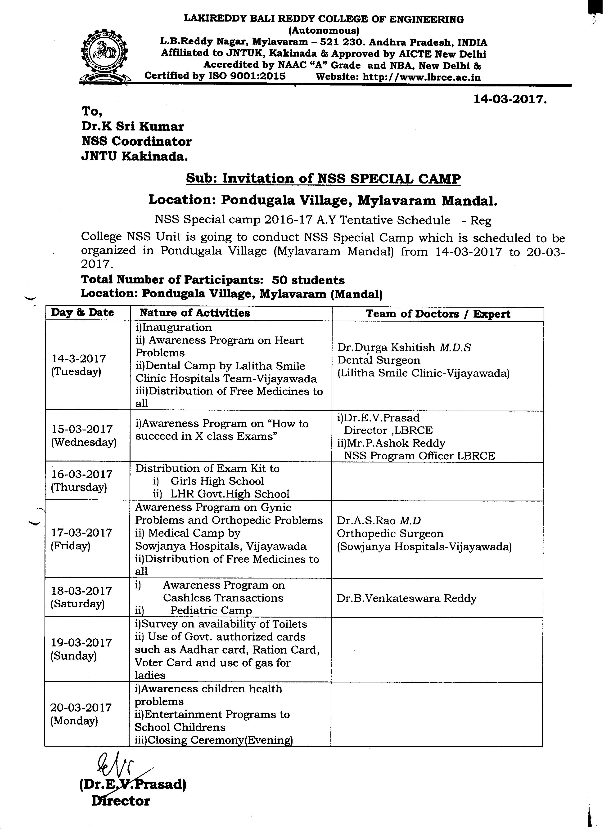 National Voters Day | 25-01-2017 | LBRCE Students | Total no.of Hours Worked: 150 | Click Here | |